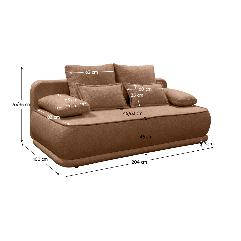 Rozmery (ŠxHxV): 204x103x76/95 cm