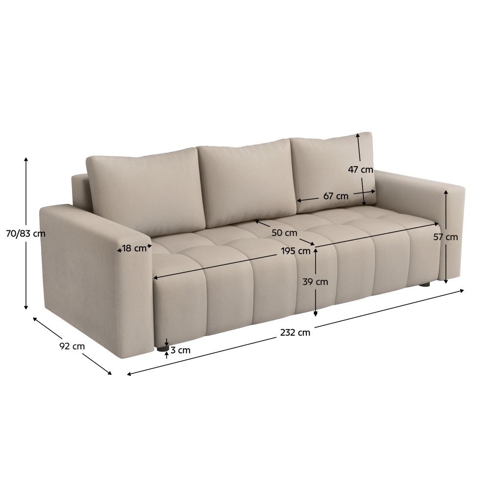 Rozmery (ŠxHxV): 232x92x70/83 cm