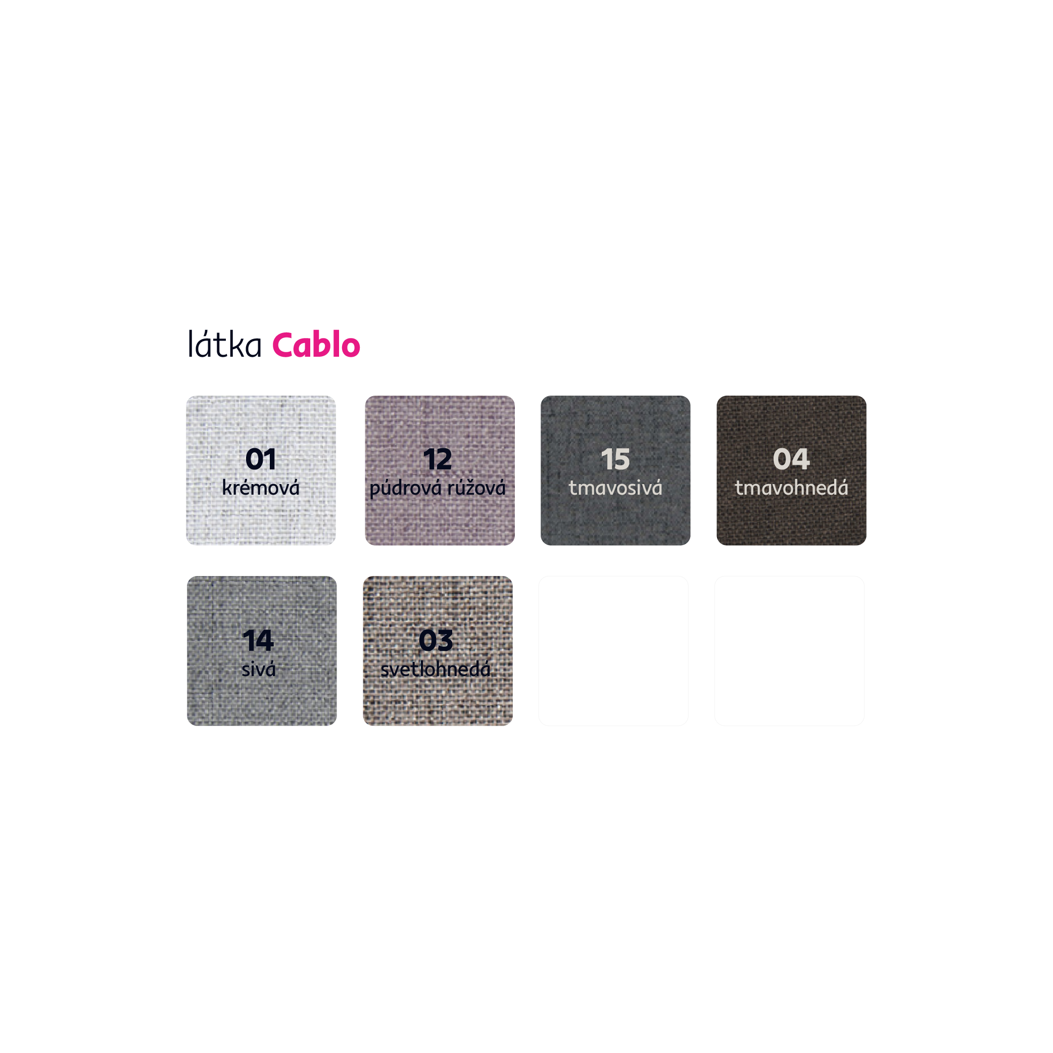Možnosť objednania v 6 farebných odtieňoch látky Cablo v cene 365 Eur.Pri individuálnej objednávke je potrebné zaplatiť 20% zálohu z danej sumy. Po uhradení zálohy bude Vaša požiadavka zadaná do výroby. Doba dodania 8-10 týždňov.