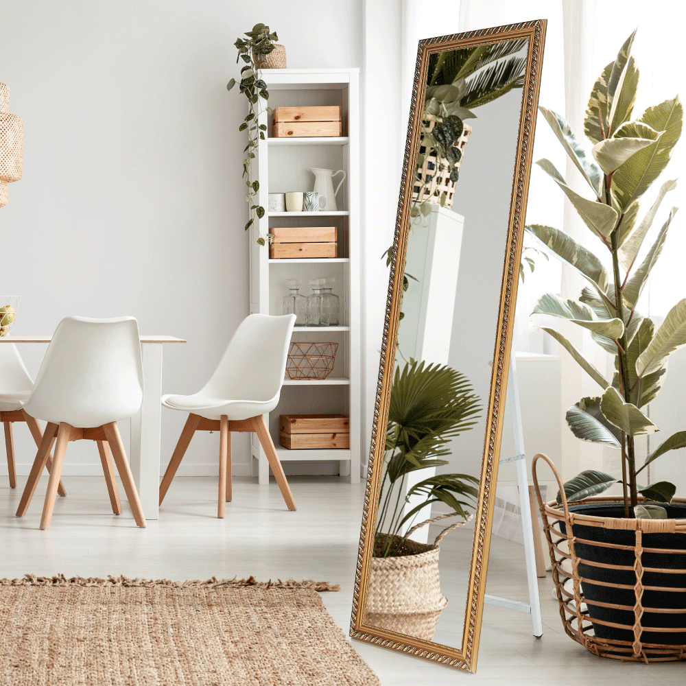 Materiál stojan: kov Farba: biela Materiál rám: drevo Farba: hnedá Rozmery (ŠxV): 40x150 cm Elegantné Stojanové Rám s ornamentom Dodávané v demonte