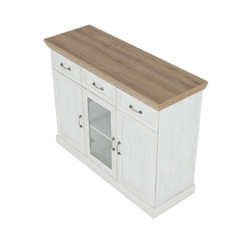 Komoda K1S, trojdverová, s tromi šuplíkmi, z elegantného sektorového systému Royal v provensálskom štýle.