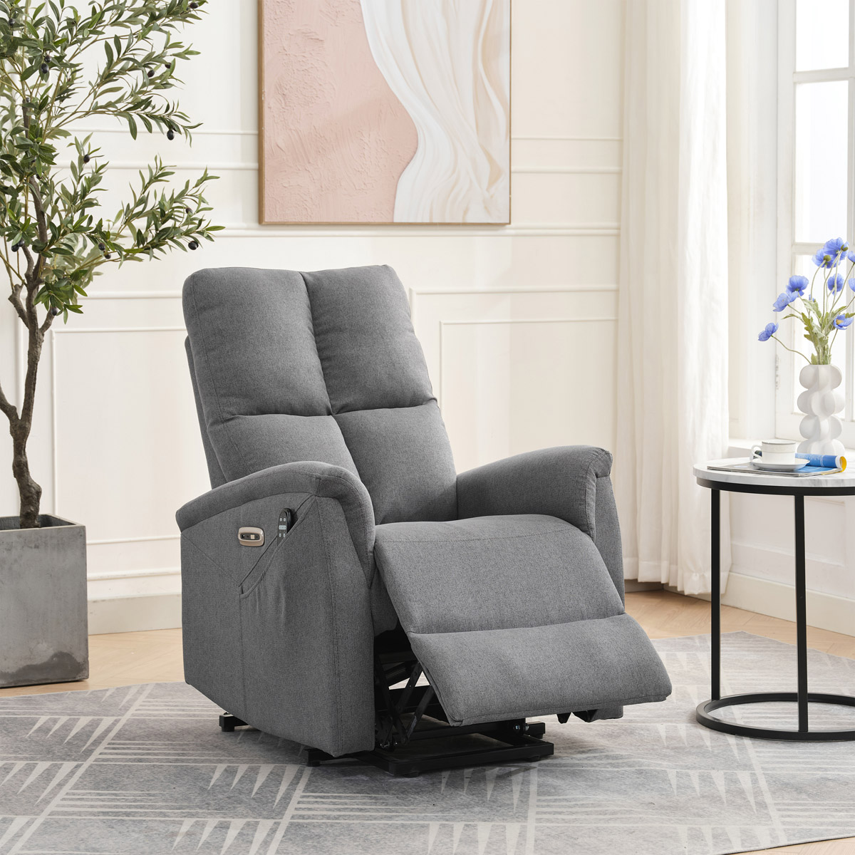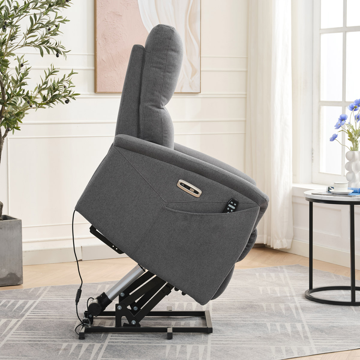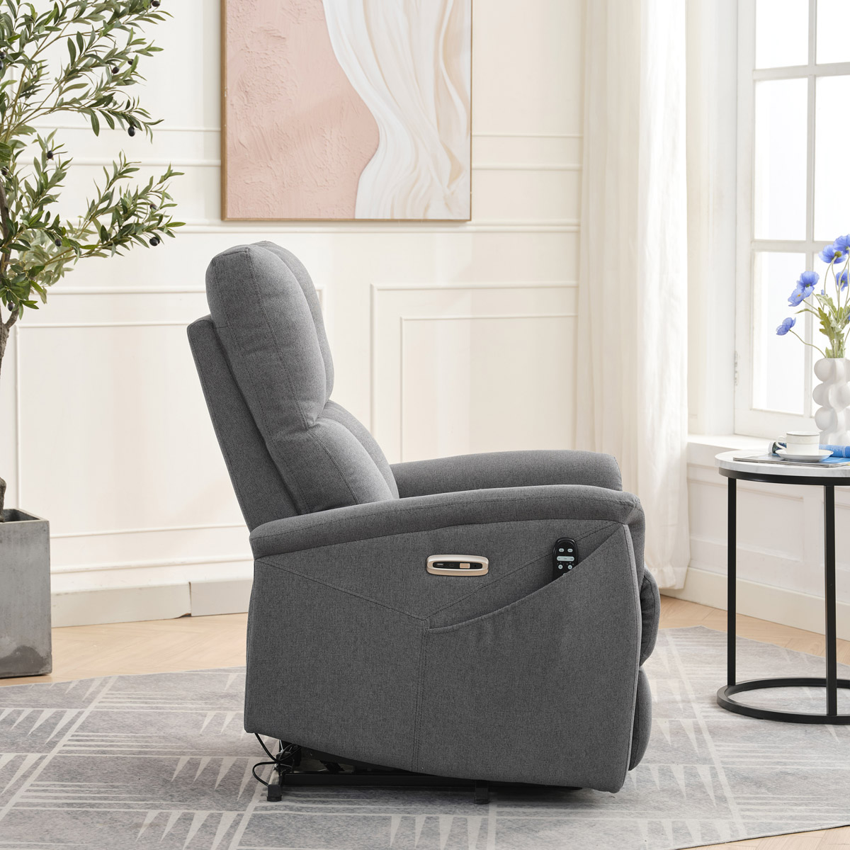 Objavte pohodlie a relaxáciu s naším elektricky ovládaným relaxačným kreslom v modernej šedej farbe. Toto kreslo je navrhnuté tak, aby poskytovalo maximálny komfort a zlepšilo váš domáci odpočinok. Ideálne do obývacej izby, kde sa stane vašim obľúbeným miestom na relaxáciu. Kľúčové vlastnosti: • Elektrické ovládanie: Kreslo je vybavené jedným motorom pre ľahké a plynulé nastavovanie polohy operadla a podnožky. • Výklopná funkcia: Uľahčuje vstávanie, čo je ideálne pre osoby s obmedzenou pohyblivosťou. • Integrované ovládanie s USB a USB-C: Panel umožňuje jednoduché nastavenie kresla a nabíjanie vašich elektronických zariadení priamo z kresla. • 8 bodová vibračná masáž: Strategicky rozmiestnené body masáže poskytujú maximálnu úľavu a uvoľnenie svalov. • Vyhrievanie: Vyhrievacia funkcia je ideálna pre chladnejšie dni a pomáha zmierniť svalové napätie. • Káblový ovládač: Ľahko dostupný a intuitívny ovládač pre funkcie masáže a vyhrievania. • Moderný dizajn: Čalúnené mäkkou a odolnou látkou v elegantnej šedej farbe, ktorá sa hodí do akéhokoľvek interiéru. Prečo si vybrať naše elektrické relaxačné kreslo? Naše elektricky ovládané relaxačné kreslo je navrhnuté s ohľadom na vaše pohodlie a zdravie. S funkciami ako sú vibračná masáž a vyhrievanie, poskytuje úľavu od každodenného stresu a napätia. Integrované ovládanie s USB portami je moderným doplnkom, ktorý vám umožní zostať pripojenie a nabíjať svoje zariadenia bez toho, aby ste museli vstávať. Výklopná funkcia je skvelá pre seniorov alebo osoby s obmedzenou pohyblivosťou, uľahčuje vstávanie a zaisťuje bezpečnosť. Zakúpte si naše šedé elektrické relaxačné kreslo ešte dnes a začnite si užívať luxusné pohodlie vo svojom domove.