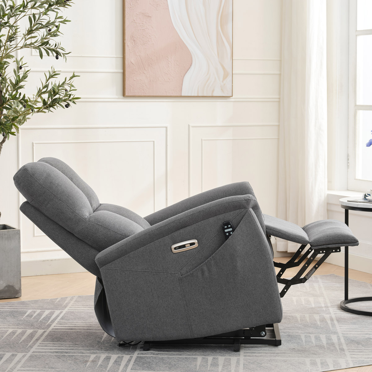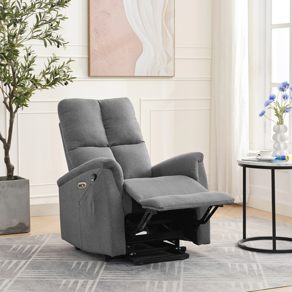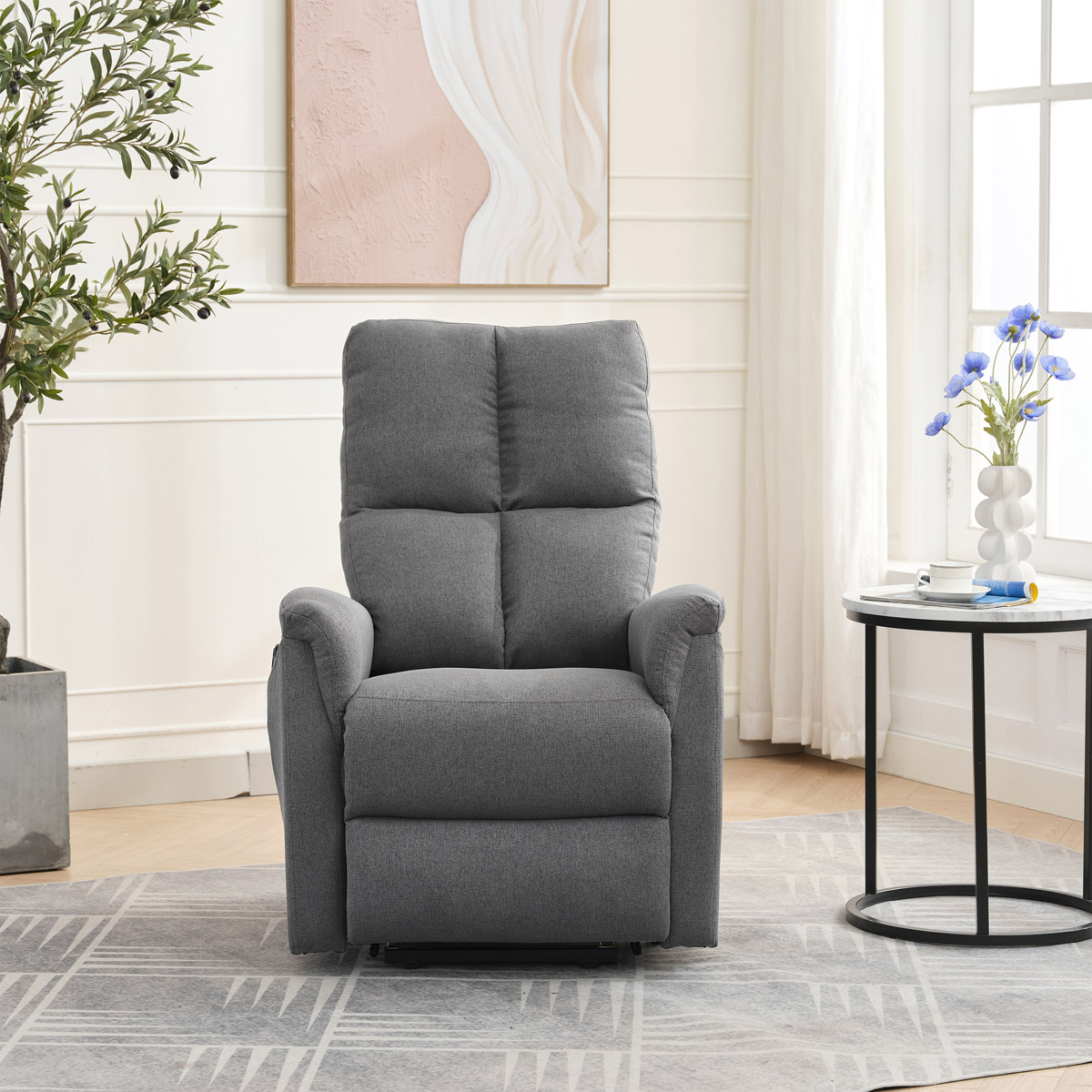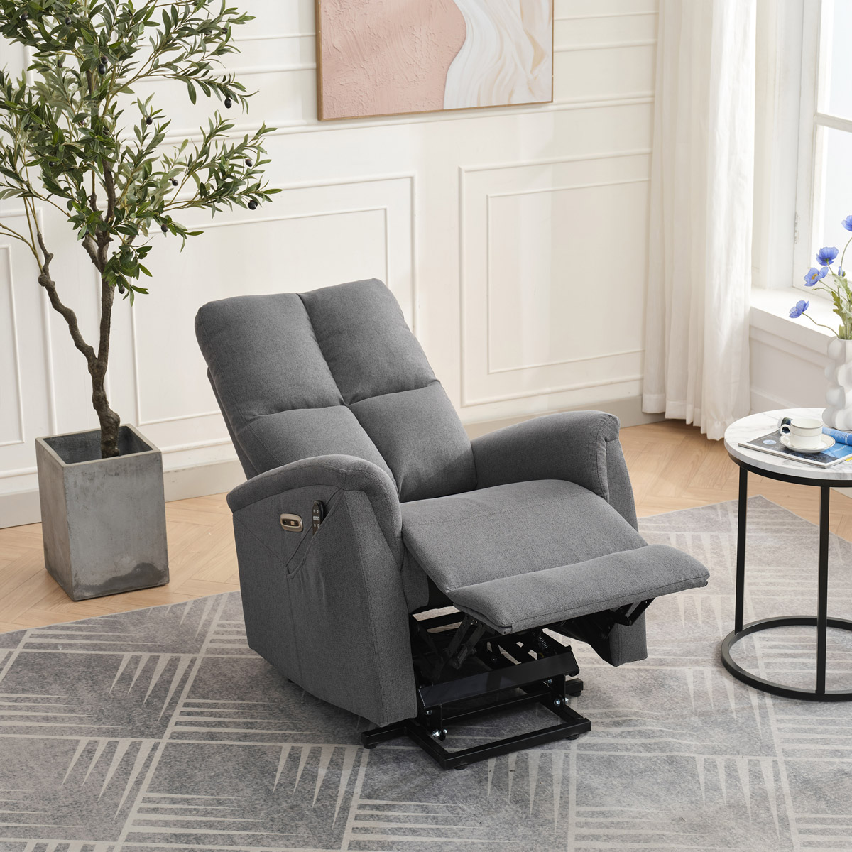 Objavte pohodlie a relaxáciu s naším elektricky ovládaným relaxačným kreslom v modernej šedej farbe. Toto kreslo je navrhnuté tak, aby poskytovalo maximálny komfort a zlepšilo váš domáci odpočinok. Ideálne do obývacej izby, kde sa stane vašim obľúbeným miestom na relaxáciu. Kľúčové vlastnosti: • Elektrické ovládanie: Kreslo je vybavené jedným motorom pre ľahké a plynulé nastavovanie polohy operadla a podnožky. • Výklopná funkcia: Uľahčuje vstávanie, čo je ideálne pre osoby s obmedzenou pohyblivosťou. • Integrované ovládanie s USB a USB-C: Panel umožňuje jednoduché nastavenie kresla a nabíjanie vašich elektronických zariadení priamo z kresla. • 8 bodová vibračná masáž: Strategicky rozmiestnené body masáže poskytujú maximálnu úľavu a uvoľnenie svalov. • Vyhrievanie: Vyhrievacia funkcia je ideálna pre chladnejšie dni a pomáha zmierniť svalové napätie. • Káblový ovládač: Ľahko dostupný a intuitívny ovládač pre funkcie masáže a vyhrievania. • Moderný dizajn: Čalúnené mäkkou a odolnou látkou v elegantnej šedej farbe, ktorá sa hodí do akéhokoľvek interiéru. Prečo si vybrať naše elektrické relaxačné kreslo? Naše elektricky ovládané relaxačné kreslo je navrhnuté s ohľadom na vaše pohodlie a zdravie. S funkciami ako sú vibračná masáž a vyhrievanie, poskytuje úľavu od každodenného stresu a napätia. Integrované ovládanie s USB portami je moderným doplnkom, ktorý vám umožní zostať pripojenie a nabíjať svoje zariadenia bez toho, aby ste museli vstávať. Výklopná funkcia je skvelá pre seniorov alebo osoby s obmedzenou pohyblivosťou, uľahčuje vstávanie a zaisťuje bezpečnosť. Zakúpte si naše šedé elektrické relaxačné kreslo ešte dnes a začnite si užívať luxusné pohodlie vo svojom domove.
