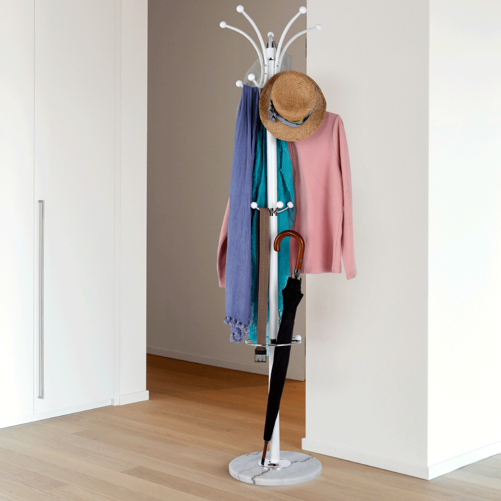 Materiál: kov/mramor Farba: biela Rozmery (ŠxHxV): 37x37x175 cm Nosnosť háčika: 3 kg Mramorová podstava S g...zobraziť celý popis produktu
